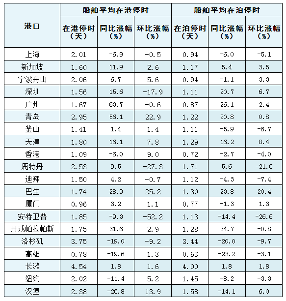 【上海航运交易所发布】2025年11月全球主要港口远洋国际集装箱船舶平均在港在泊停时