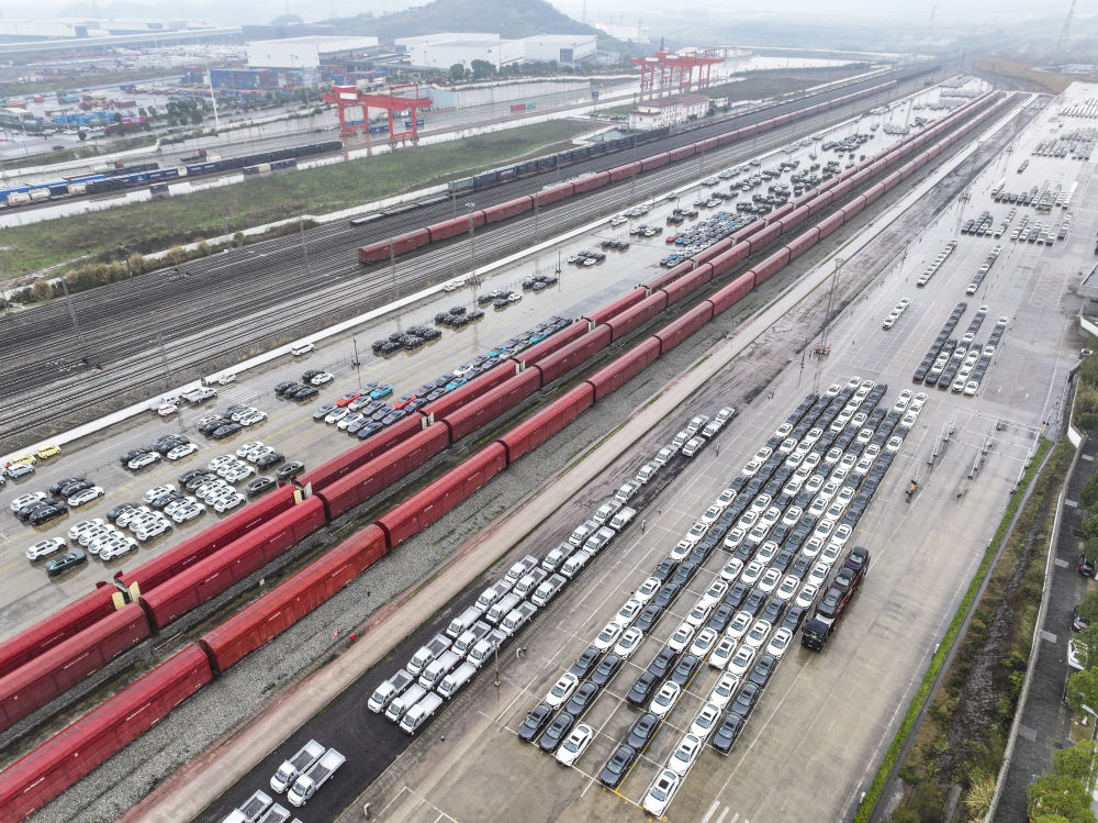 在重庆,一辆辆新能源汽车整装出发,搭乘中欧班列驶向德国杜伊斯堡;在河南郑州,手机、平板电脑等电子产品,经中欧班列抵达荷兰鹿特丹;在浙江义乌,装满玩具、家居用品的中欧班列驶向西班牙马德里……
