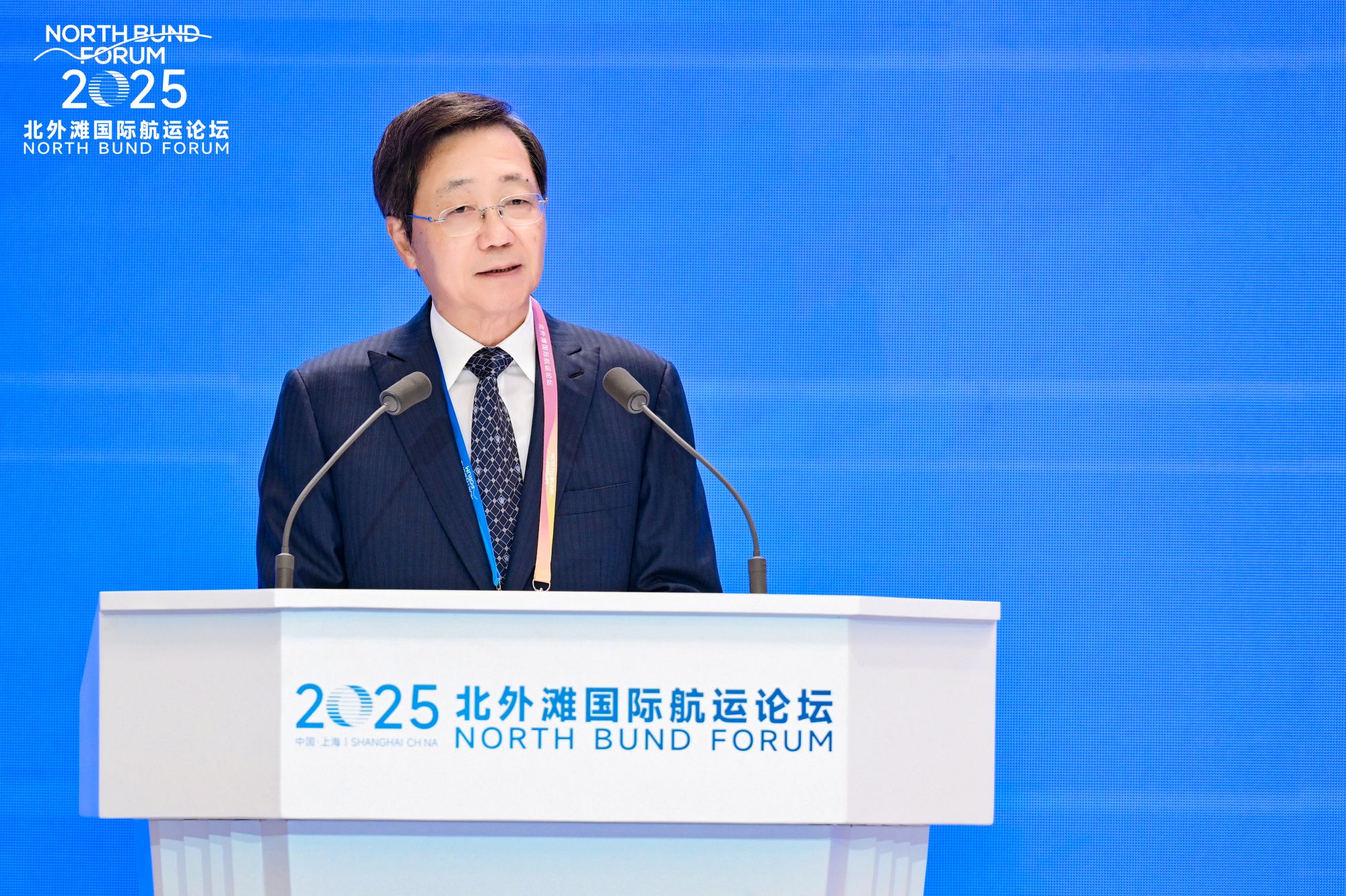2025年10月19日-21日,由上海市人民政府与交通运输部共同举办的“2025北外滩国际航运论坛”在上海世界会客厅隆重召开。作为“2025北外滩国际航运论坛”分论坛之一,由上海航运交易所、中国船东互保协会、上海航运保险协会共同承办的“金融与保险”论坛于10月20日上午举行。中国船东互保协会董事长、中国远洋海运集团有限公司原董事长许立荣,上海市人民政府副秘书长、市商务委员会主任朱民,交通运输部水运局二级巡视员高海云先后致辞,上海航运交易所党委副书记、副总裁井艳主持论坛。